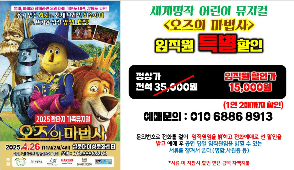 <오즈의 마법사> 뮤지컬 임직원 특별할인
