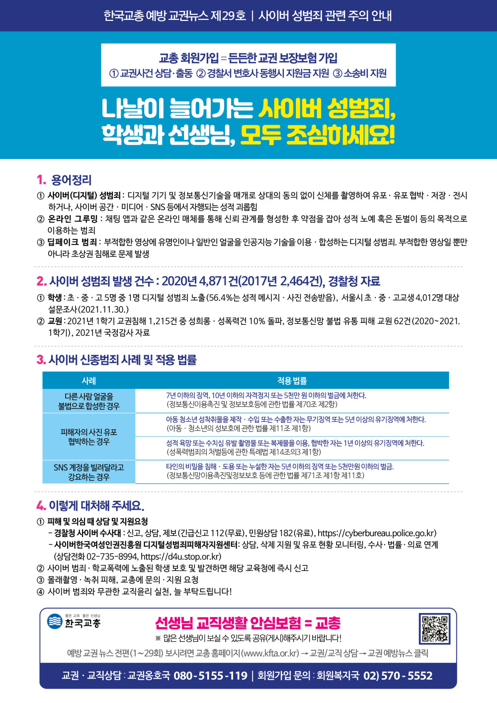 이에 따라 신종 사이버 성범죄 안내 및 예방을 위해 예방 교권 뉴스를 알려드립니다.